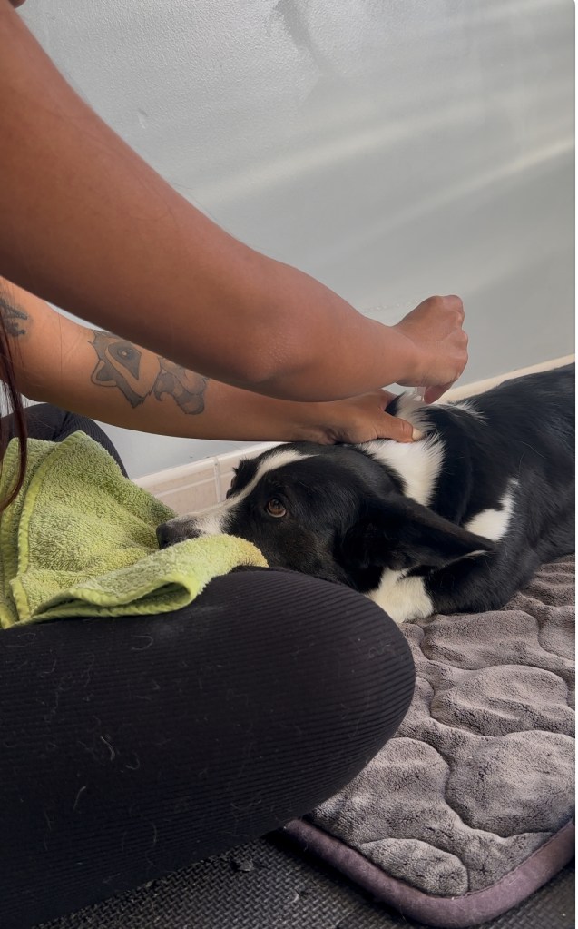 Ce type d’entraînement consiste à entraîner nos animaux à se faire soigner volontairement sans contrainte, ni contention, ni stress. Aller chez le dentiste n’est pas une partie de plaisir, mais nous tolérons ce moment. Le but est de développer cette résilience chez le chien et de le préparer à se faire manipuler, toiletter ou soigner grâce à la notion de choix.